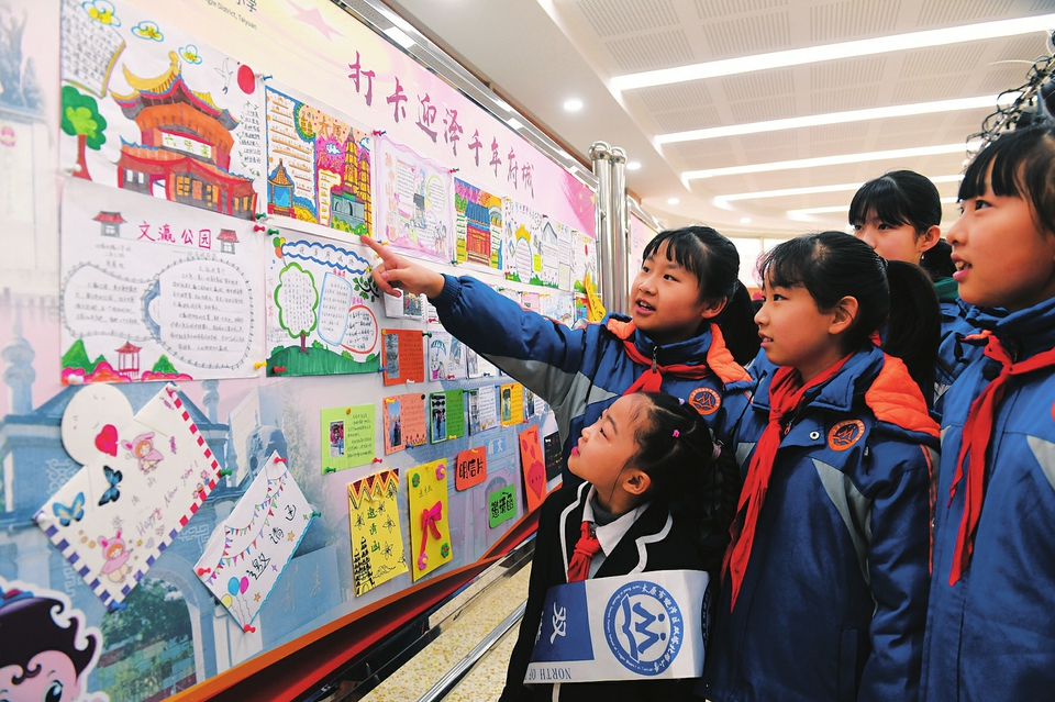 1月10日,省城雙塔北路小學(xué)二年級(jí)師生利用迎澤區(qū)的文旅資源,在學(xué)期末組織開(kāi)展“府城游”綜合素養(yǎng)大比拼活動(dòng),讓孩子們領(lǐng)略精彩自信的“人文迎澤”,傳承紅色基因,感受歷史文化。(記者王瑞瑞攝)