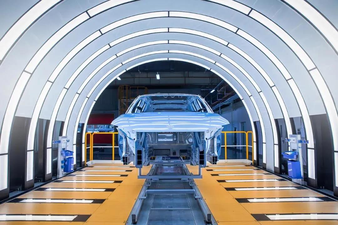 在江淮蔚來(lái)先進(jìn)制造基地里拍攝的智能新能源汽車(chē)生產(chǎn)線。張大崗攝