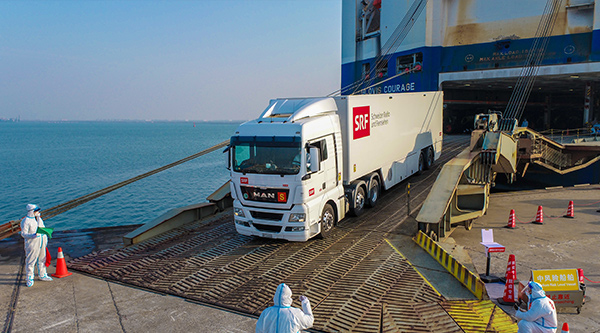 1月15日上午,載運(yùn)著6輛北京冬奧會(huì)轉(zhuǎn)播車的韓國籍“現(xiàn)代英勇”輪靠泊天津港。本批冬奧物資由天津出入境邊防檢查總站東港邊檢站完成快速入境查驗(yàn)后,將直接運(yùn)送至北京冬奧場(chǎng)館。