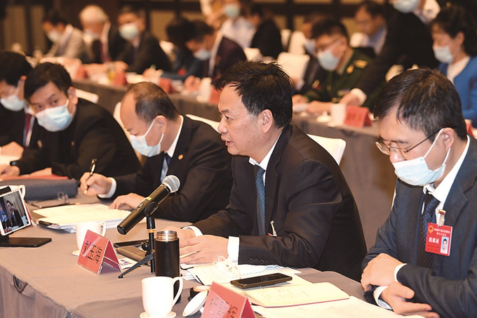 1月20日下午,省十三屆人大五次會(huì)議無(wú)錫代表團(tuán)舉行全體會(huì)議,審議江蘇省人民政府工作報(bào)告。本報(bào)記者 吳勝 朱江 萬(wàn)程鵬 攝