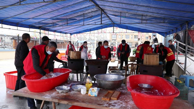 春節(jié)臨近,溫州瑞安城鄉(xiāng)到處洋溢著過(guò)年的濃厚氛圍。瑞安南濱街道團(tuán)前村文化禮堂前熱鬧非凡,香氣四溢,村民們正忙碌地?fù)v著年糕。