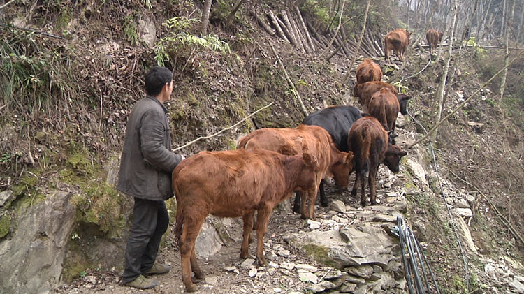村民趕著牛群上山放養(yǎng)。青川縣融媒體中心供圖