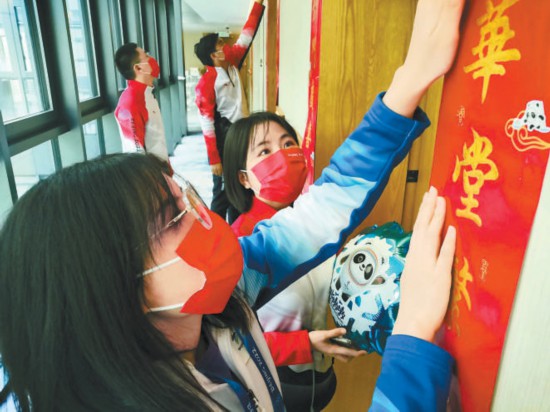昨天上午,菲律賓、東帝汶、摩納哥、智利、馬達加斯加、法國共6個代表團14人入境后進村入住。下午,拉脫維亞、希臘、斯洛文尼亞、意大利、中國臺北等14個代表團92人進村。目前,村內(nèi)居民達到近800人。抵達當天恰逢中國除夕,運動員一進村就感受到一個別樣的運動員之家。各個居住組團高高掛起中式六角造型宮燈,每間運動員公寓也都貼上了對聯(lián),年味撲面而來。