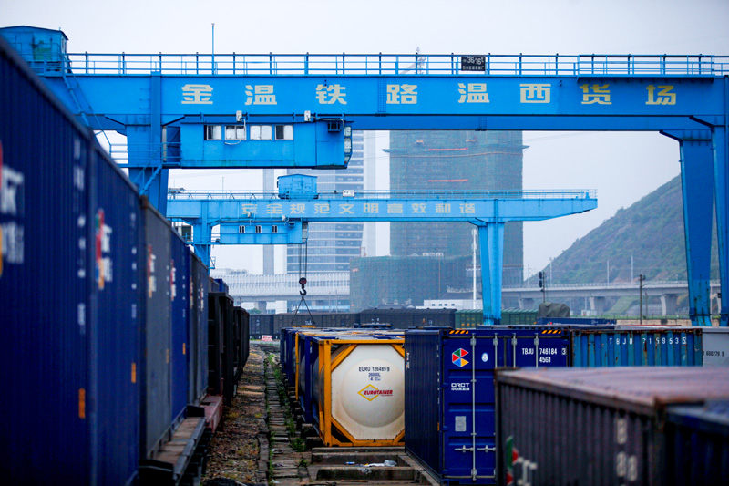 春節(jié)期間,大量貨物從金溫鐵路溫州西站裝車運出。戴益澤攝