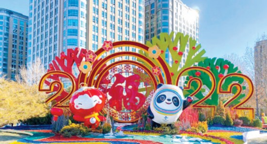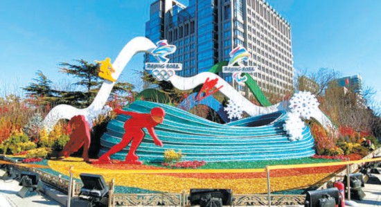 “綠色冬奧”主題花壇將運動和自然融為一體。