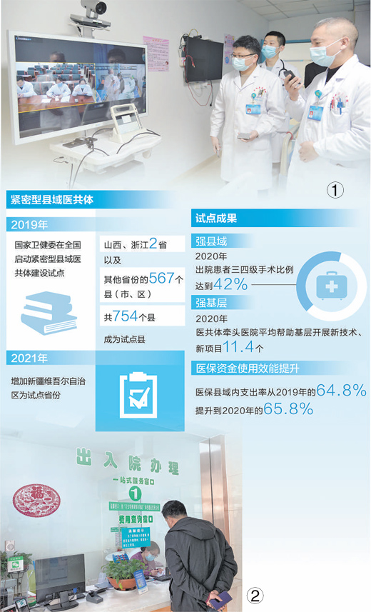 近日,國家衛(wèi)健委印發(fā)《醫(yī)療機構(gòu)設(shè)置規(guī)劃指導(dǎo)原則(2021—2025年)》,要求按照縣鄉(xiāng)一體化、鄉(xiāng)村一體化原則積極發(fā)展緊密型縣域醫(yī)共體。2019年,國家衛(wèi)健委在全國啟動緊密型縣域醫(yī)共體建設(shè)試點。目前全國已有535個縣建成縣、鄉(xiāng)、村三級聯(lián)動的緊密型縣域醫(yī)共體,試點縣醫(yī)療服務(wù)效能提高,縣域內(nèi)就診率超90%。