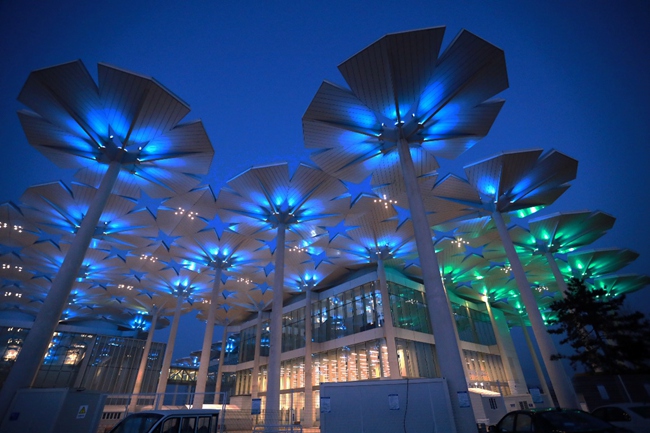 延慶冬殘奧頒獎廣場前花傘被點(diǎn)亮。張慶玉攝