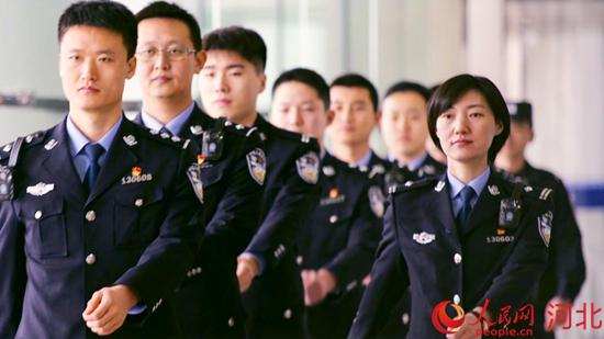 人民網(wǎng)石家莊3月8日電 “準備出發(fā)……”一連串清脆響亮的聲音發(fā)出,一排手持警棍和盾牌,全身武裝的公安干警,行動迅速,壓人氣息。