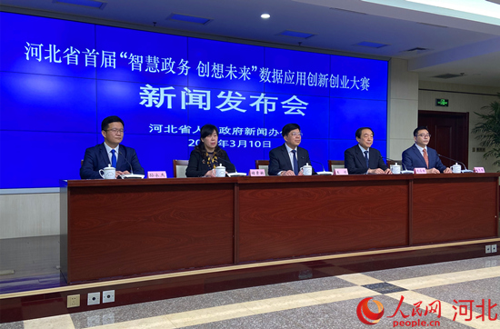 河北省首屆“智慧政務 創(chuàng)想未來”數(shù)據(jù)應用創(chuàng)新創(chuàng)業(yè)大賽新聞發(fā)布會現(xiàn)場。 人民網(wǎng) 付兆颯攝