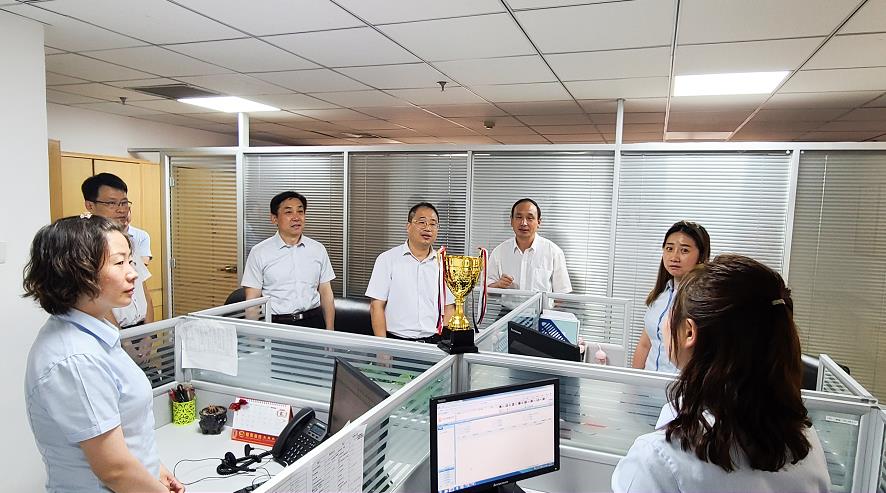 人民銀行消保局副局長馬紹剛在太原中心支行視察12363熱線工作。