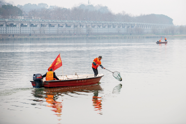 3月22日,金華蘭溪市蘭江江面上,護(hù)水人員駕駛打撈船巡河,及時清理漂浮物。當(dāng)天是第三十屆“世界水日”。近年來,蘭溪市護(hù)水人員每天在水面上巡邏,發(fā)現(xiàn)垃圾和漂浮物及時清理,確保江水干凈。(胡肖飛)