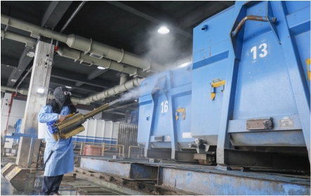 東臺環(huán)衛(wèi)處對垃圾中轉(zhuǎn)站、環(huán)衛(wèi)車輛、果皮箱、公共廁所等進(jìn)行消殺大掃除,筑牢公共環(huán)境安全屏障。東臺市委宣傳部供圖