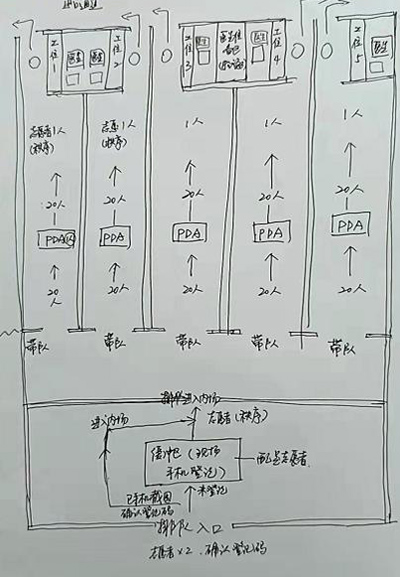 正如祁媛媛所說,靈感來源于實(shí)踐??恐B日來在檢測(cè)一線工作的體驗(yàn),祁媛媛不斷摸索,反復(fù)思考,根據(jù)1-6個(gè)工位的不同組合,手繪了6張檢測(cè)流程圖,上面清晰地標(biāo)注著檢測(cè)的動(dòng)線、每個(gè)環(huán)節(jié)以及對(duì)應(yīng)的功能和注意事項(xiàng),從而能夠直觀地指導(dǎo)居村提升檢測(cè)效率,讓檢測(cè)如“流水線”般高效順暢。