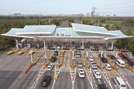 3月28日下午,在嘉興高速南湖收費(fèi)站外廣場(chǎng),防疫人員對(duì)來(lái)嘉車(chē)輛進(jìn)行健康碼、行程卡的檢查,守好嘉興“南大門(mén)”。(趙穎碩)