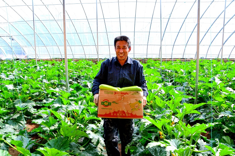 掀開大棚門簾,熱氣撲面而來。眼前,一壟壟西葫蘆藤蔓郁郁蔥蔥,金黃色花朵上結(jié)出一個(gè)個(gè)西葫蘆,瓜條順直、鮮嫩翠綠。大棚負(fù)責(zé)人任國喜樂呵呵地說:“這里建成后一刻也沒閑置,及時(shí)種上西葫蘆、西紅柿。眼下第一批西葫蘆已經(jīng)上市,價(jià)格不錯(cuò)。等到生長旺季,畝產(chǎn)5000斤不成問題?!?/p>