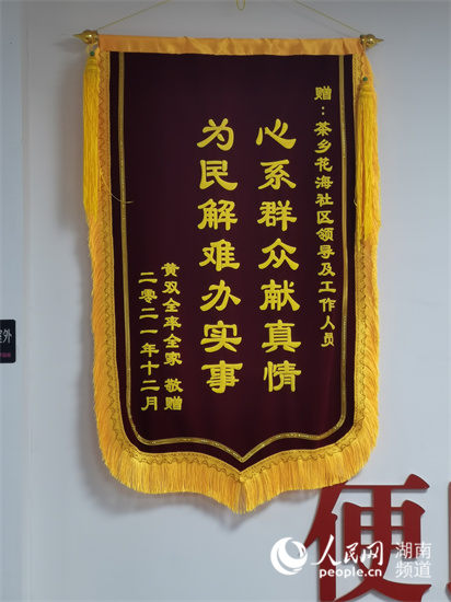 居民贈(zèng)送的錦旗。人民網(wǎng) 李芳森攝