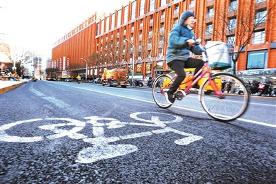 王府井慢行系統(tǒng)改造升級后,市民騎車經(jīng)過 攝/本報記者 黃亮