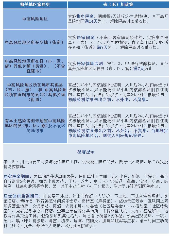 其他地區(qū)來(lái)(返)川政策小貼士