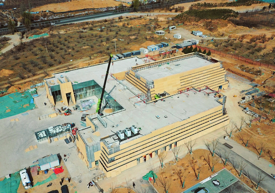 3月31日,省城北齊文化遺址公園各項(xiàng)工程有序推進(jìn),北齊壁畫博物館現(xiàn)雛形。該館位于太原市迎澤區(qū)王家峰村,是依托北齊徐顯秀墓的原址保護(hù),以北齊壁畫和其他文物保護(hù)、研究、利用、管理為核心的遺址博物館。(記者王瑞瑞攝)