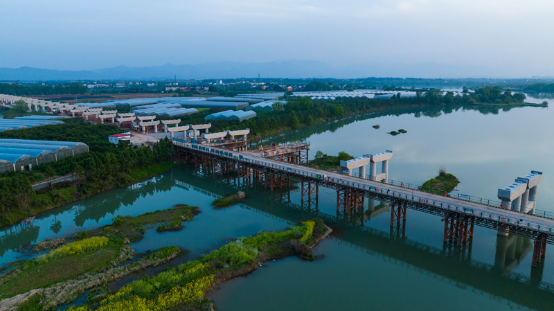 4月1日,在杭金衢高速公路改擴建二期新增衢江互通連接線重要節(jié)點跨衢江大橋,100多名工人在現(xiàn)場開展大橋梁板架設和主橋墩的圍堰施工。衢州地區(qū)3月24日解除疫情Ⅰ級響應相繼復工復學復市后,浙江省交通集團杭金衢改擴建二期項目第一時間復工,并于3月28日全部復工達產。