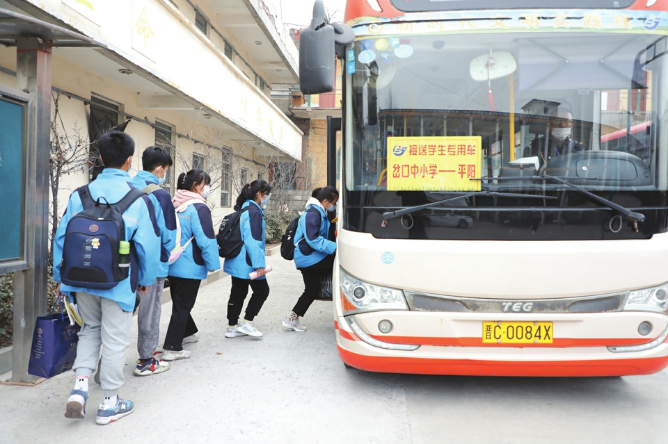 2013年,陽(yáng)泉市平定縣實(shí)行交通惠民“暖心工程”,開通了免費(fèi)接送寄宿制學(xué)生專用車,每周五下午到校接送學(xué)生回家,周一早晨再接送他們安全返校。截至目前,平定公交公司共開通接送寄宿生專線72條,投入運(yùn)營(yíng)車輛95臺(tái),覆蓋全縣10個(gè)鄉(xiāng)(鎮(zhèn))的202個(gè)村莊、31所學(xué)校、2600余名寄宿制學(xué)生。圖為近日,該縣岔口中學(xué)操場(chǎng)上,分散居住在十里八鄉(xiāng)的寄宿制學(xué)生正準(zhǔn)備乘車回家。(張春林?jǐn)z)