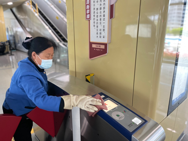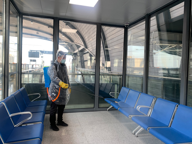 在站臺(tái)、站廳等重點(diǎn)區(qū)域,盡管沒(méi)有了客流,海寧運(yùn)營(yíng)公司根據(jù)車站實(shí)際需求維持了每日3至4次的消殺頻次。