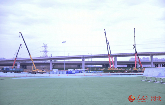 走進(jìn)石家莊高鐵商務(wù)區(qū)施工現(xiàn)場,挖掘機(jī)正在施工,重型卡車來回穿梭,工地上一派繁忙。干凈整潔的甬道、出具規(guī)模的網(wǎng)球場、籃球場,滿眼綠樹紅花。而在去年8月之前,這里還是低矮破舊,私搭亂建、基礎(chǔ)設(shè)施老化的舊市場。僅僅過了半年,高鐵商務(wù)區(qū)中央綠色體育公園初具規(guī)模,石家莊的“城市客廳”雛形已現(xiàn)。