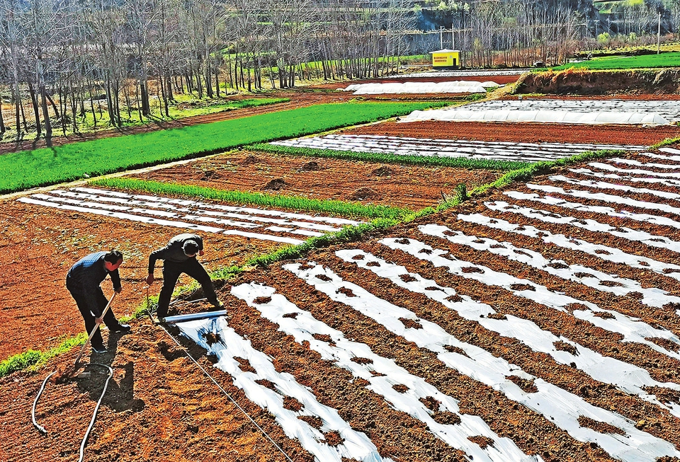 4月2日,垣曲縣南聯(lián)村村民正在田間地膜覆蓋種植早熟糯玉米。該村村民發(fā)揮區(qū)域銷售優(yōu)勢,搶時保墑地膜覆蓋種植白糯、黑糯、香禾糯3個優(yōu)質(zhì)糯玉米品種100畝。這類糯玉米產(chǎn)量高、口感好,4月初播種,6月下旬即可上市,畝收入可達6000多元,比傳統(tǒng)玉米經(jīng)濟效益提高3倍多。(魯國林攝)