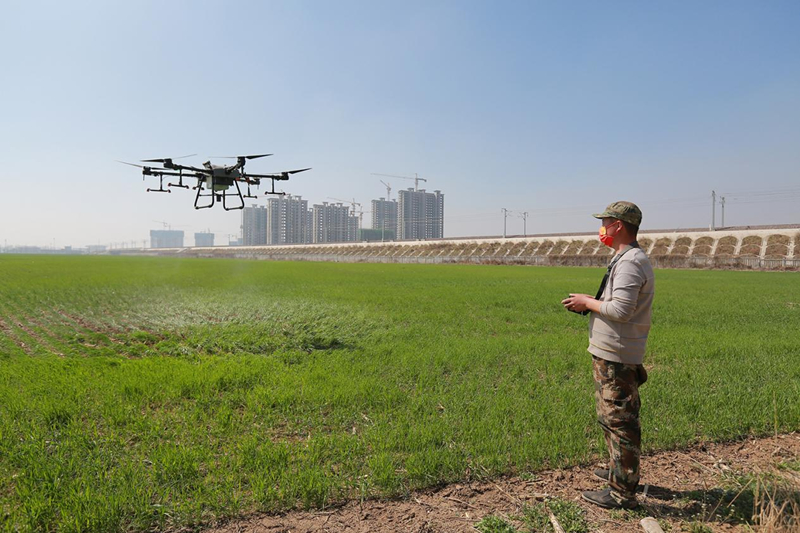 “2022年,我們合作社種植了3000畝小麥,為加強田間管護,我們與農(nóng)時賽跑,用科技助力糧食豐產(chǎn)豐收。通過推廣使用植保無人機作業(yè),大大提高了田間管護效率。根據(jù)提前設(shè)定好的飛行速度、作業(yè)軌跡,植保無人機就會按設(shè)定程序開展作業(yè)。當(dāng)前植保無人機一天作業(yè)面積能達到600畝?!必S田種植專業(yè)合作社負責(zé)人王少錁說。