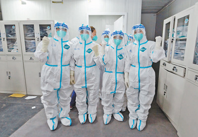 4月8日晚,隨著海南省援滬醫(yī)療隊近百名醫(yī)護(hù)人員的進(jìn)駐,上海嘉定南翔方艙醫(yī)院正式投入運(yùn)行。圖為醫(yī)護(hù)人員在入艙前加油鼓勁。