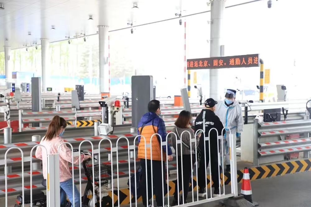 “根據(jù)疫情防控工作,4月11日零時(shí)起,固安縣通勤人員恢復(fù)進(jìn)返北京、固安。目前,堅(jiān)持非通勤人員非必要不進(jìn)京,如因重大疾病等極特殊原因確需進(jìn)京的人員,需出示相應(yīng)證明后進(jìn)京,并嚴(yán)格執(zhí)行北京市疫情防控政策?!惫贪部h辛立村公安檢查站站長(zhǎng)徐立說(shuō)。