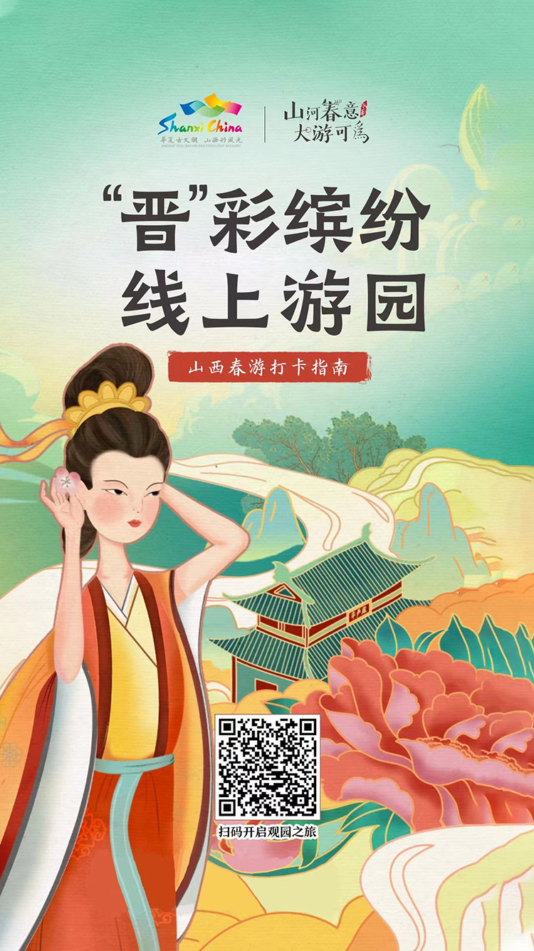 人民網(wǎng)太原4月20日電(桑莉媛)花開晉染、珍味晉有、芳華晉藝、匠心晉展。近日,山西省文化和旅游廳策劃推出了《晉彩繽紛·線上游園》互動H5,以四大板塊來展示山西春日之美,邀廣大網(wǎng)友一起線上游園,云賞山西好風(fēng)光!