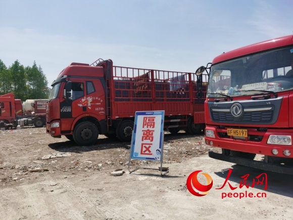 南通市崇川區(qū)陳橋街道疫情防控外來(lái)貨車集中隔離點(diǎn)。人民網(wǎng)記者 王繼亮攝