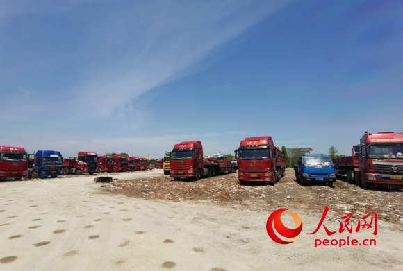 南通市崇川區(qū)陳橋街道疫情防控外來(lái)貨車集中停車點(diǎn)。人民網(wǎng)記者 王繼亮攝