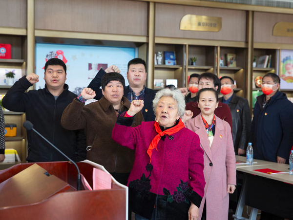 冬訓期間,曲秀媛老人帶領轄區(qū)黨員代表重溫入黨誓詞。魏星攝