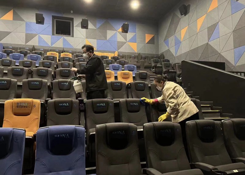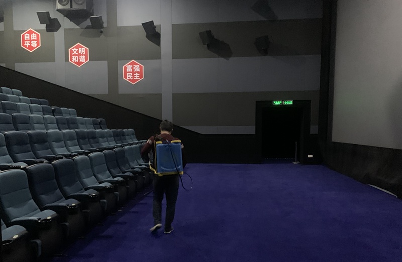 電影院的工作人員正在對(duì)影廳進(jìn)行消殺。受訪者供圖