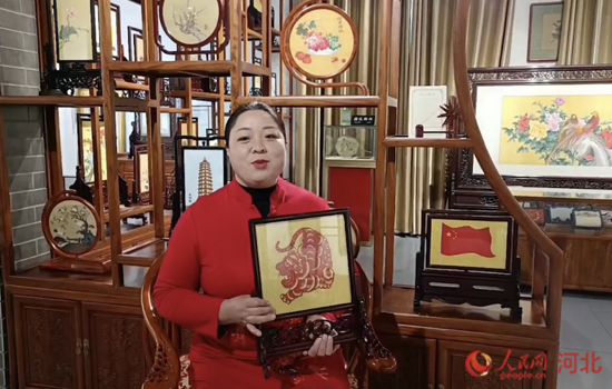 國(guó)家級(jí)非物質(zhì)文化遺產(chǎn)項(xiàng)目省級(jí)傳承人程苗欣制作的虎虎生威緙絲。 人民網(wǎng) 周博攝