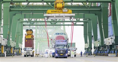 天津港“零缺陷”接卸第600架次空客飛機大部件