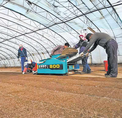 4月14日,吉林省各市州實(shí)現(xiàn)疫情防控社會(huì)面清零目標(biāo)。春耕時(shí)節(jié),全省堅(jiān)持“兩手抓”,疫情防控不松勁,農(nóng)業(yè)生產(chǎn)不誤時(shí)。圖為龍井市智新鎮(zhèn)村民通過軌道車等設(shè)備進(jìn)行水稻育秧作業(yè)。
