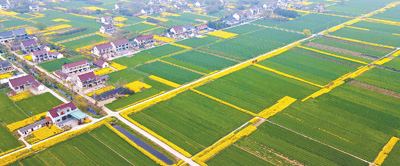春耕時(shí)節(jié),農(nóng)機(jī)嗡嗡,春水汩汩,白鷺翩飛。由南向北,一行行稻秧逐漸栽滿水田,冬油菜開始結(jié)莢長粒,麥苗陸續(xù)起身拔節(jié)、孕穗。