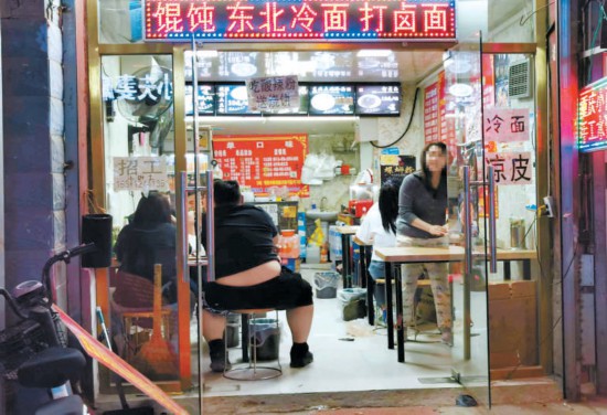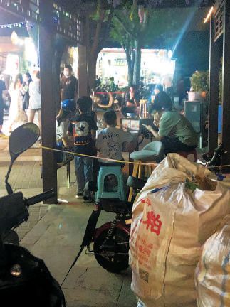 一路向西,類似的現象更是頻頻出現,個別商家仍在做著“路邊攤”的生意。一名商戶告訴記者,因為點餐需要排隊,所以在便道上設置了等候區(qū),掃碼點餐時商戶已和顧客講明,只能點選打包帶走。記者眼見那些餐食果真裝進打包餐盒,送到了所謂的等候區(qū),可是顧客拿到手并未離開,打開餐盒立刻大快朵頤,顯然等候區(qū)只是給堂食外擺打了個掩護。