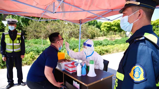 貨車(chē)司機(jī)正在服務(wù)區(qū)做核酸檢測(cè)。 河北省交通運(yùn)輸廳供圖