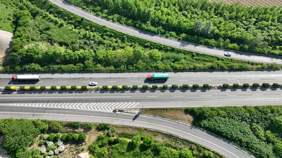 運(yùn)輸進(jìn)京物資的貨車正在高速公路上行駛。 河北省交通運(yùn)輸廳供圖