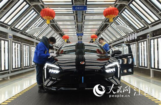 正月初一,年味正濃。而位于南昌經(jīng)開區(qū)的江鈴集團新能源汽車公司工廠的生產(chǎn)車間內(nèi),工人在車輛前專注地忙碌著。