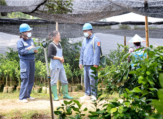 黨員服務(wù)隊(duì)了解基地果苗生產(chǎn)用電需求。陳心誠(chéng)攝