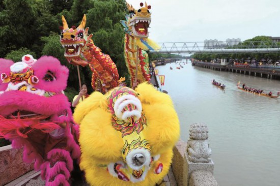 紅榴綠艾沐蘭湯,龍舟下水鬧端陽。5月28日上午,伴隨著鏗鏘有力的鼓聲響起,一條條彩色長(zhǎng)龍?jiān)谑澜缥幕z產(chǎn)大運(yùn)河崇福段運(yùn)河畔翻騰起舞,由此拉開了2022桐鄉(xiāng)·崇?!斑\(yùn)河宋韻”端午民俗風(fēng)情活動(dòng)的帷幕,此次活動(dòng)也是2022嘉興端午民俗文化節(jié)的首場(chǎng)活動(dòng),標(biāo)志著2022年的端午“盛宴”正式開席。