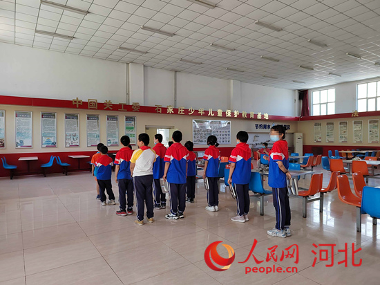 石家莊市少年兒童保護(hù)教育中心的孩子們在排隊(duì)吃午飯。 人民網(wǎng) 祝龍超攝