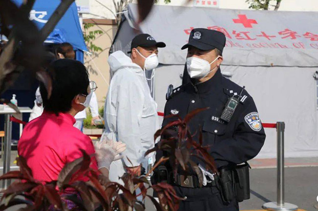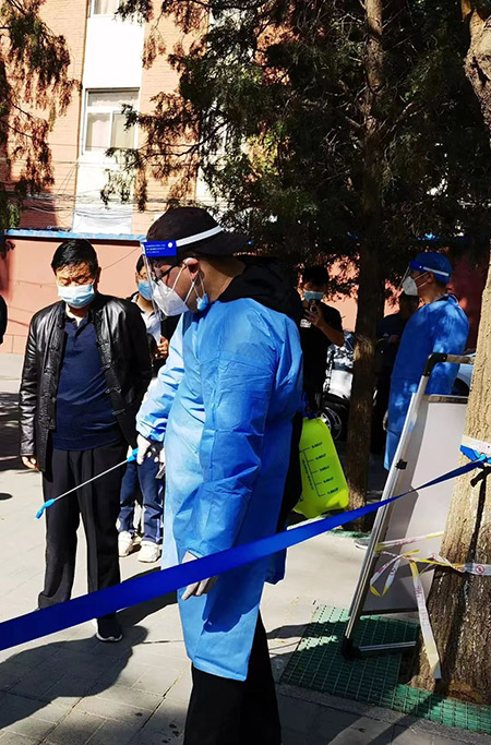 4月26日,周慶接到緊急通知,轄區(qū)公司一名員工被定為新冠肺炎密切接觸者。他迅速穿上防護(hù)裝備奔赴現(xiàn)場(chǎng),配合防疫部門落實(shí)封控措施、組織核酸檢測(cè)、維持現(xiàn)場(chǎng)秩序,工作有條不紊地開展著。短短幾天后,30日凌晨又初診一名新冠肺炎陽性病例,小區(qū)立刻進(jìn)行封控管理。
