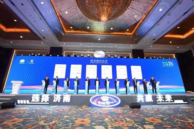 本次峰會期間,濟南市共有19個項目簽約。其中,在省主會場共簽約7個項目,項目總投資額約9.71億美元,合同外資2.78億美元,涉及新材料、新能源、新一代信息技術等領域。在濟南城市推介活動現(xiàn)場,共簽約12個項目,總投資額約8.54億美元,合同外資3.85億美元,涉及高端裝備制造、現(xiàn)代農業(yè)、新能源、類金融等領域,其中制造業(yè)類項目7個。