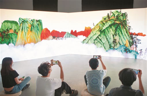 人工智能山水圖、可實(shí)時(shí)互動的抽象畫、沉浸式體驗(yàn)的5G山水畫卷……眾多充盈“黑科技”元素的藝術(shù)作品,打造出充滿古意而又嶄新的文化盛宴,帶領(lǐng)觀眾體驗(yàn)沉浸式和流動式的藝術(shù)畫卷,感受“有聲、有色、有全景”的超高清沉浸式視聽體驗(yàn)。